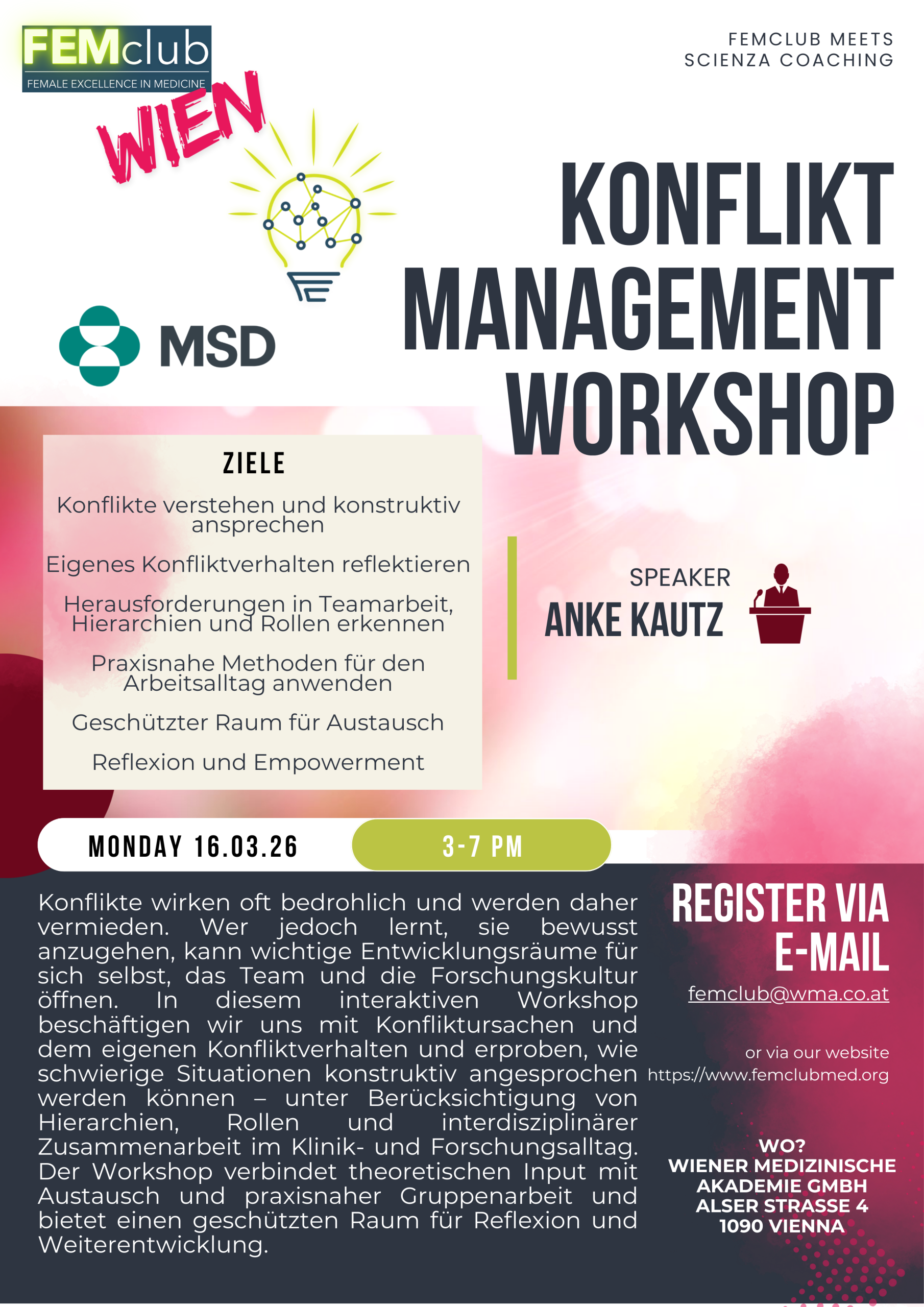 Für die Warteliste bitte eine Mail an femclub@wma.co.at senden.